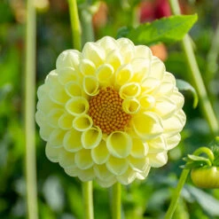 ‘Jowey Martina’ does the clan proud. This terrifically floriferous plant produces loads of evenly colored, 4½” Ball-form blossoms in a lovely pastel yellow that shades paler toward the petal edges. The plants have a tidy habit with contrasting dark green foliage and strong stems that are ideal for cutting. A treasure for gardens and containers, too.