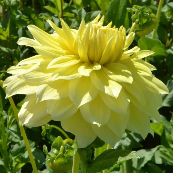 It’s easy to see where Dahlia ‘La Luna’ got its name: The 10” fully double, Dinnerplate blooms in varying shades of pale yellow and white glow as bright as the moon. The generously sized, Informal Decorative form flowers, some detailed with golden stripes, create brilliant highlights at the back of the border and in larger-scale floral arrangements.