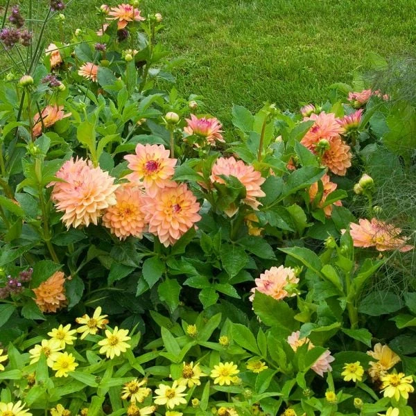 A little treasure, Dahlia ‘Melody Dora’ adds its Midas touch to containers and the front of borders. The 4″ flowers open creamy yellow with neat salmon tips, and then darken to yellow rimmed in salmon orange. Combine ‘Melody Dora’ with Cannas for extra dazzle. Decorative form. PP 13,257