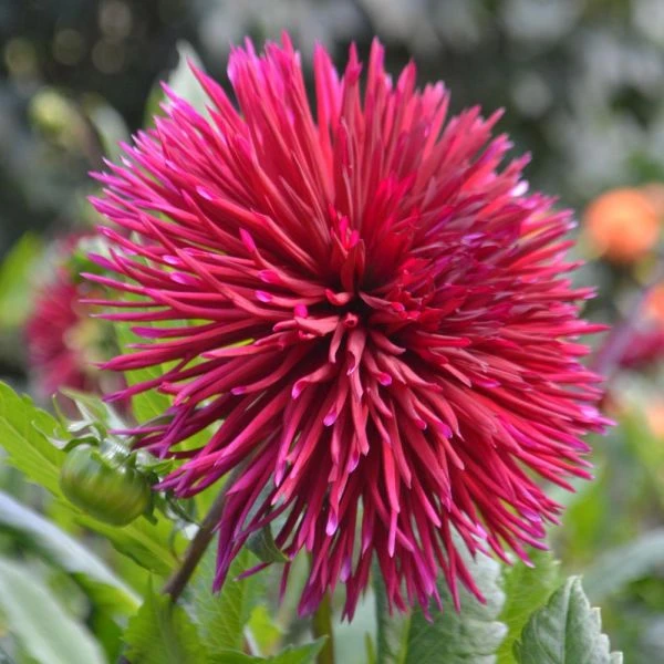 A spiky flower form suggestive of a sea urchin gives this Dahlia its name and makes it a standout in the border, but the dark red color of the 4” blooms is equally irresistible. Look closely, and you’ll see purple at the tips of each petal. A certifiable showstopper.