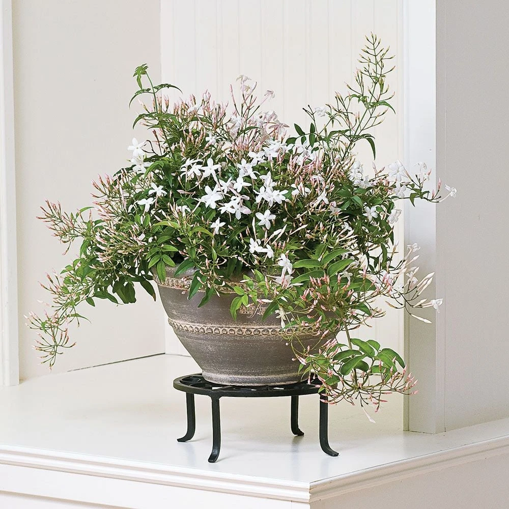 For long bloom, Jasmine prefer cooler temperatures and bright indirect light. Make sure to water your Jasmine when the top half inch of soil feels dry to the touch.