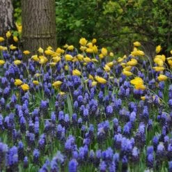 Muscari thrive in full sun or deciduous shade, tolerate practically any soil, and seem to live forever. They are ideal as companions for taller bulbs or flowering shrubs, and look marvelous set out in loose sweeps all by themselves. Easy to force.