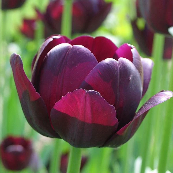 The blooms of Tulip ‘Queen of Night’ are a maroon so dark that they look black. They add the effect of a shadow to an otherwise bright spot in your garden and provide a stunning complement to a pastel bouquet. We love ‘Queen of Night’ with ‘White Triumphator’ and offer them together as the “Nuit Blanche” mix. Heirloom, 1944. Single Late.